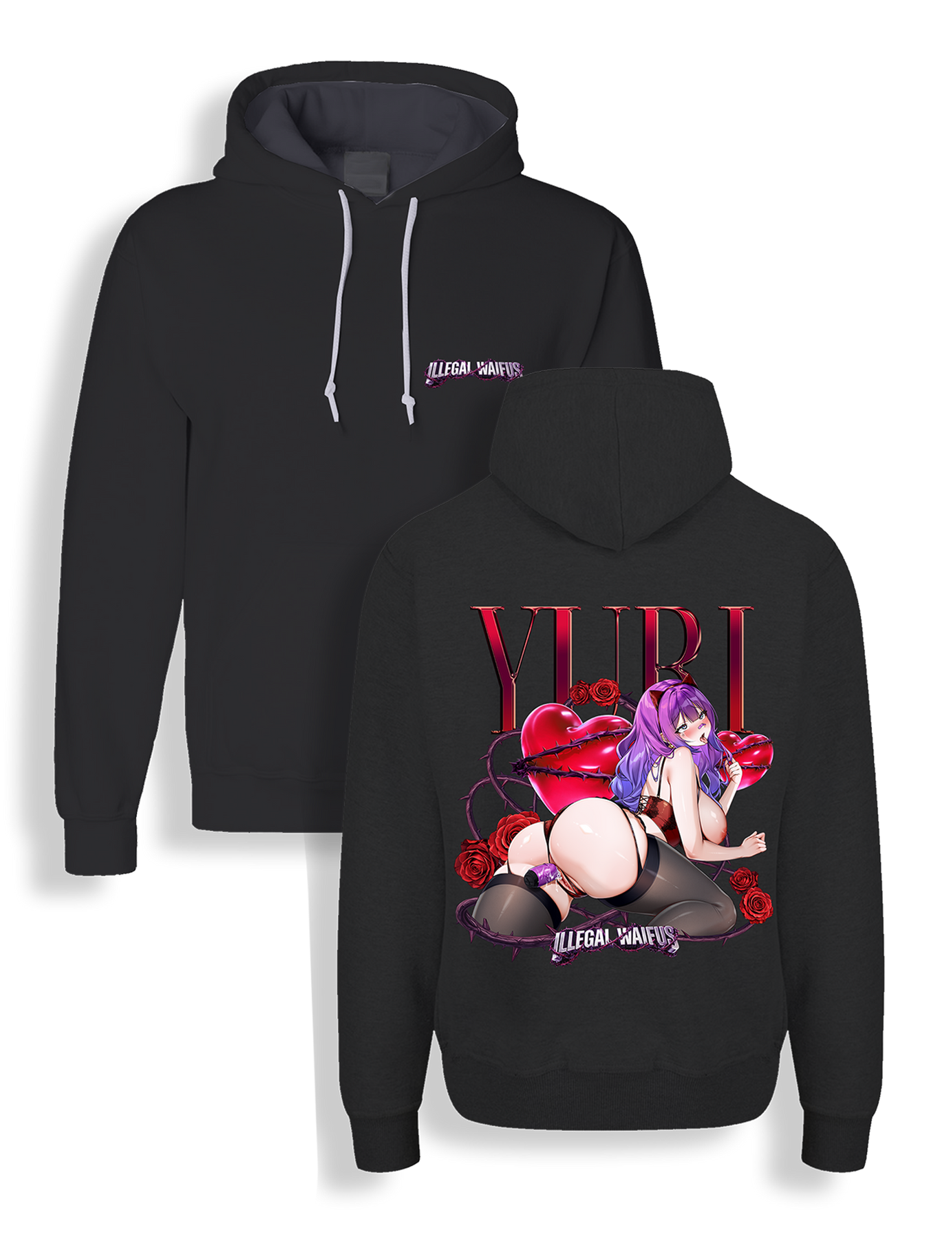 All ILLEGAL WAIFUS products from new drops are available as pre-orders, while items from previous drops (like stickers and prints) are usually in stock. Apparel, desk mats, XL stickers, and skateboards are always made to order.